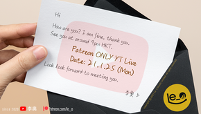 Patreon 會員直播 delay 到暫定下星期,敬請留意。